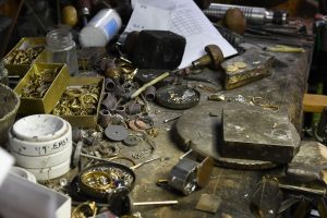 The work shp at Gibson Jewlers in Columbia SC. Gregory is working on apprasing jewlery for the DEA. Photos for a semester story for J452. Photo Credit: Cait Russell