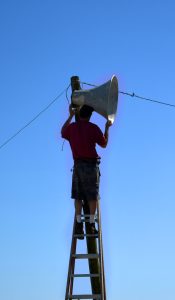 George Willis installs the massive sound system in preparation for the Carolina Cup in Camden. SC. Photo by ©Cait Russell