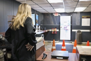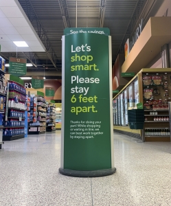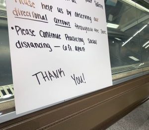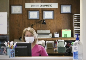 ROCK HILL, S.C. – The following photos are part of a series on how Coronavirus has affected businesses in Rock Hill, SC. From what I have noticed, many businesses are still open but they are making adjustments to protect workers and customers. The first two pictures feature Richelle Boon, a worker at Carolina Chiropractic taking my mom’s temperature before she can go back for her appointment. The next two pictures focus on how UPS has installed a plexiglass sheet and cones to maintain a safe distance between workers and customers. Lastly, pictures five and six show how Publix has promoted the six feet apart rule.