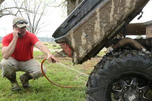 Russell works an underground plumbing and maintenance job, but his main work is the farm itself. Each day start off the same; chores around the property. First the cows have to be fed both feed in a silo on the farm, as well as hay he collects from around the property over the year. Feeding the cows can take time. Older cows and calves must be fed separately to insure each get enough to eat. While the cows eat, he counts them every morning. Russell describes the thought of losing a calf or cow as stressful and would distract him all day if he wasn’t positive they were all present.